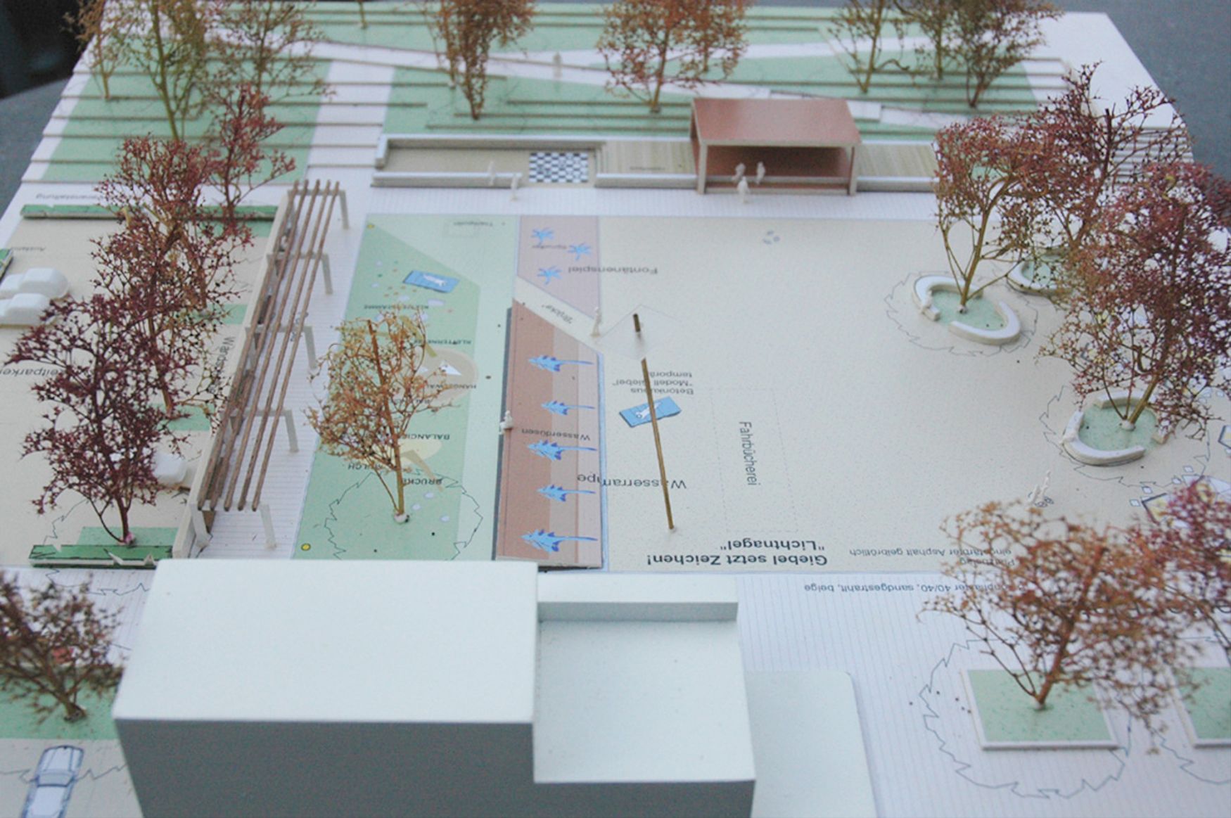 Es wird ein multifunktionaler Platz vorgesehen, der allen Bedürfnissen einer aktiven Stadtbevölkerung Rechnung trägt. Durch die Materialwahl und den verschiedenen Aktionsbereichen gewährleistet der Platz eine große "Annahme" und Bespielbarkeit.