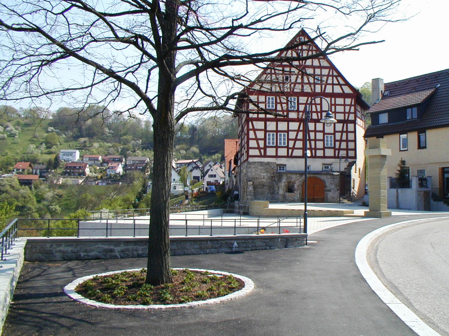 Platzgestaltung an der alten Stadtmauer in landschaftlich exponierter Lage mit Aussichtsplatz