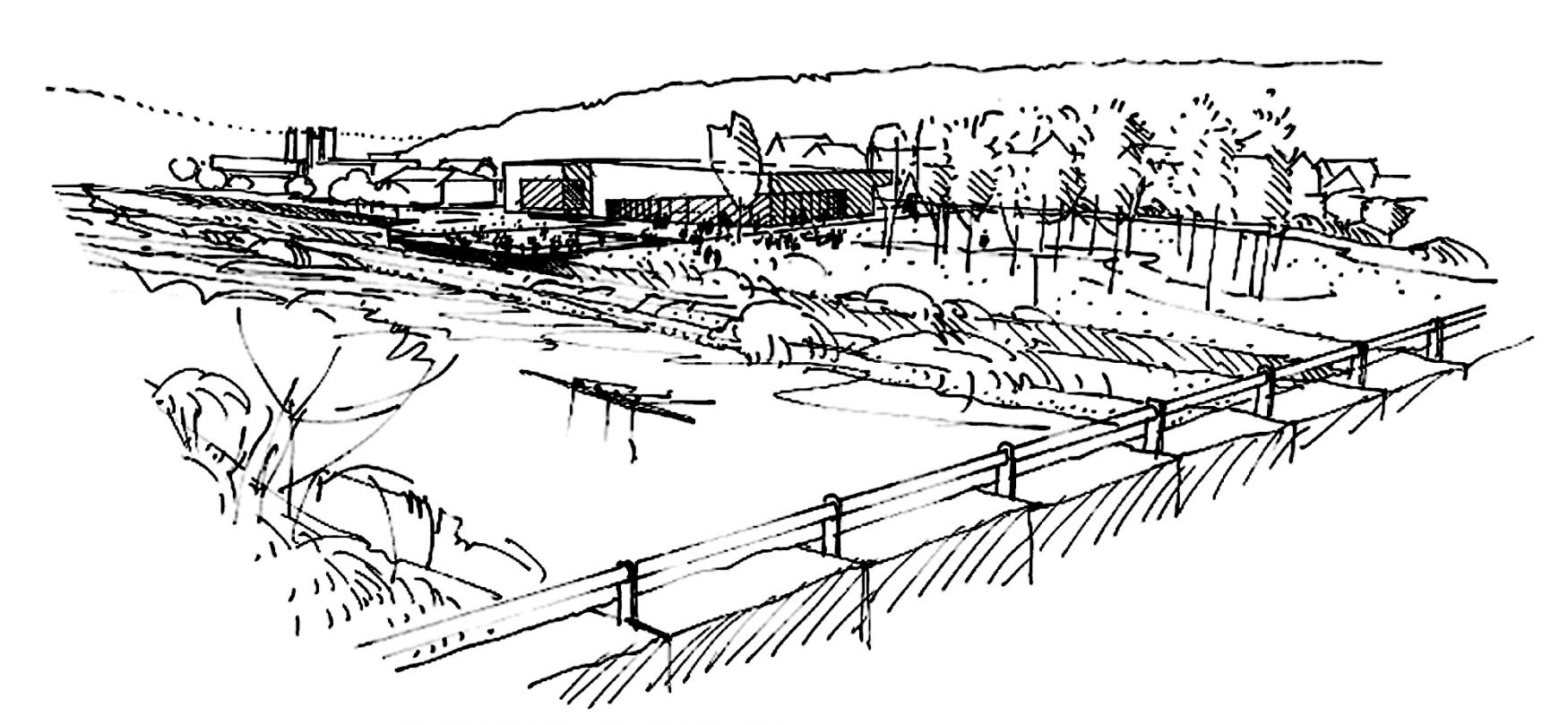Das Herauslösen und Freistellen eines eigenständigen, prägnanten Baukörpers ohne Rückseiten wird als städtebauliches Ziel der Gesamtidee vorangestellt. Besonders die Ablösung von den angrenzenden Privatgrundstücken und eine größtmögliche Nähe zum Neckar wird angestrebt.