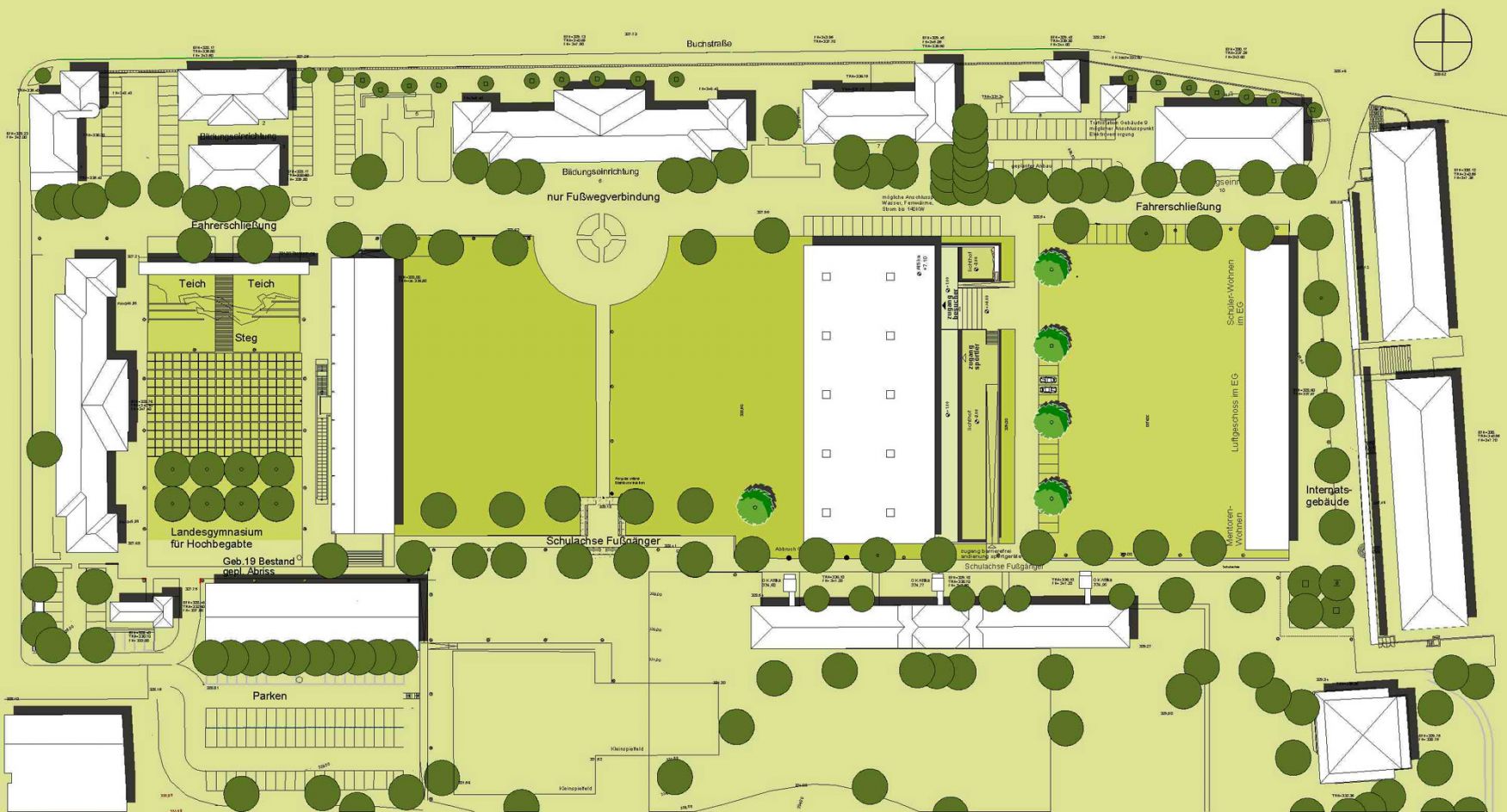 Eingebettet in das historische Ensemble der Bismarckkaserne wird die neue Sporthalle gemeinsam mit den neu errichteten Campus- und Internatsbauten zum zentralen Bestandteil der Universitätsanlage. Durch die Lage des neuen Baukörpers wird die Symmetrie des Campus ergänzt und eine klare städtebauliche Situation geschaffen.